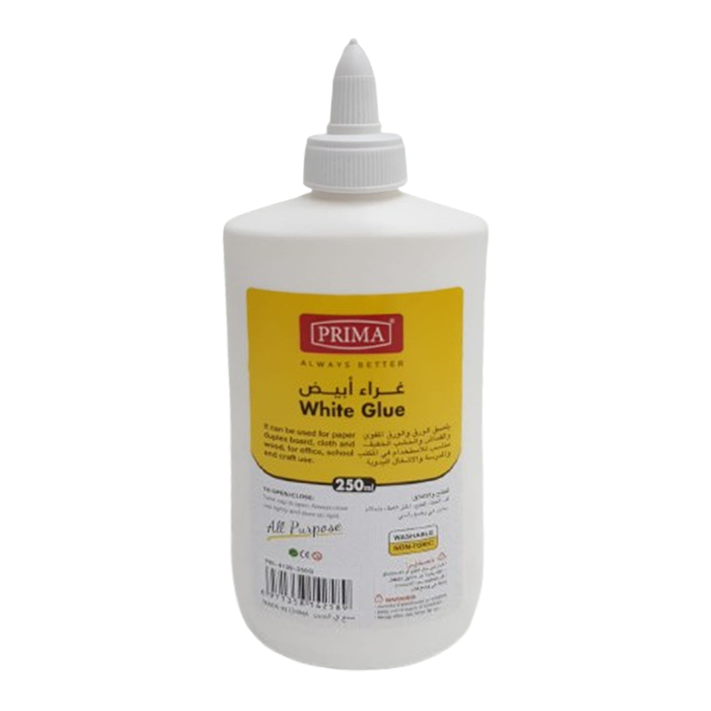 غراء أبيض 250 مل بريمايلصق الورق والورق المقوى والقماش والخشب الخفيف ، مناسب للأستخدام في المكتب والمدرسة والاشغال اليدوية